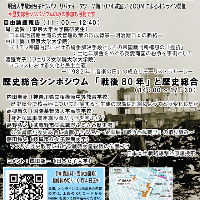 大会・シンポジウム (当日参加可)第8回「歴史総合」シンポジウム・自由論題報告のご案内