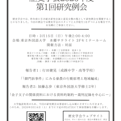 4月例会 お知らせ 2010.04.23 下記の通り月例研究会を行います。是非ご参加下さいますよう、お願い申し上げます。 日時:2010年4月23日(金)18時半~ 場所:明治大学リバティタワー1091教室(9階) 報告:小沢詠美子氏「江戸・東京の緑地と都市計画-公園・庭園の動向を中心に-」赤津正彦氏「19世紀イギリスの都市と緑-都市煤煙問題を手がかりに-」